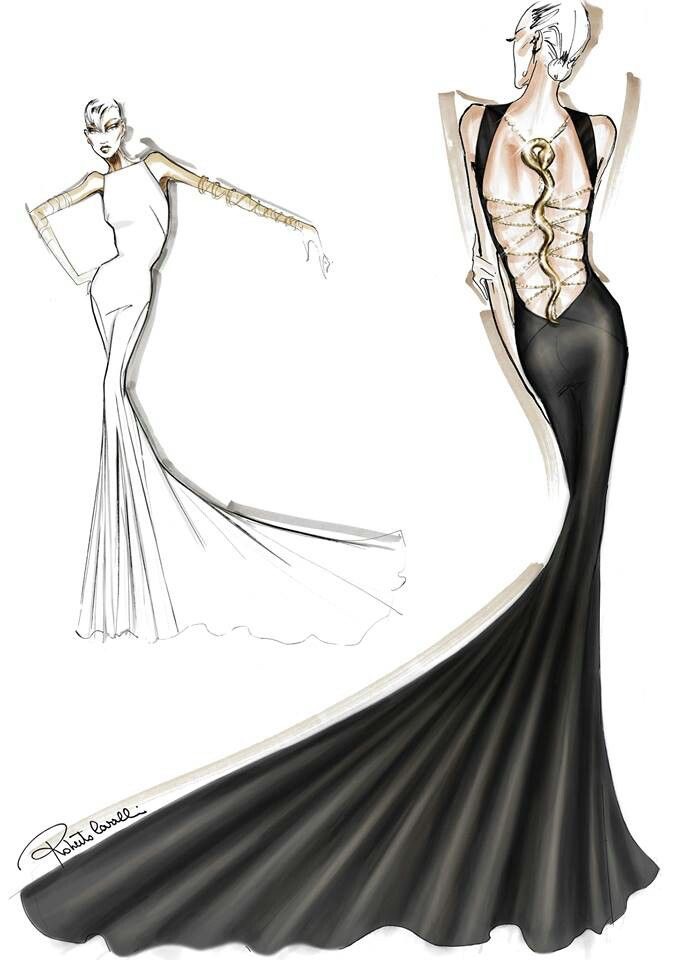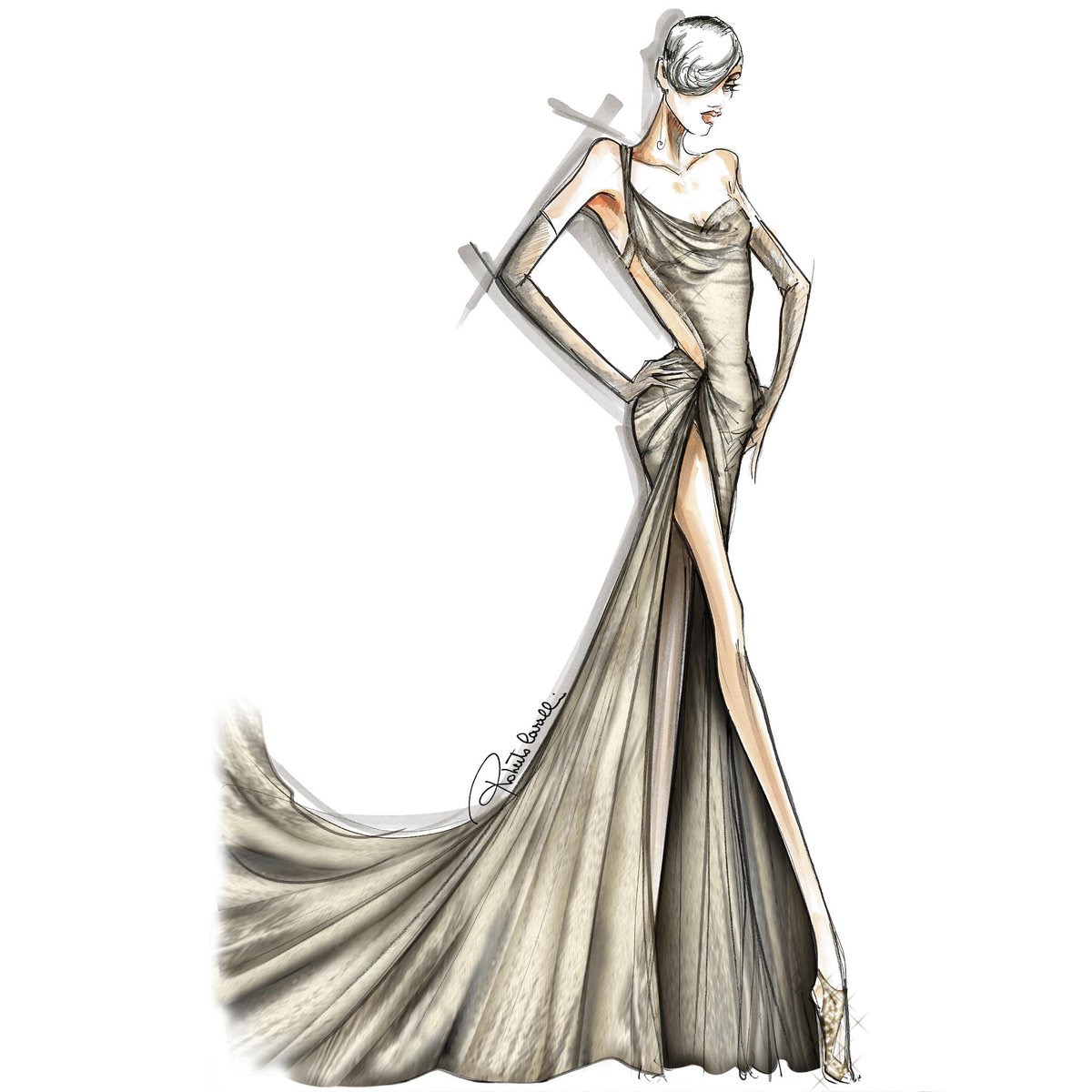 Roberto Cavalli sketch of custom made gown written by Lady Gaga on GMA
