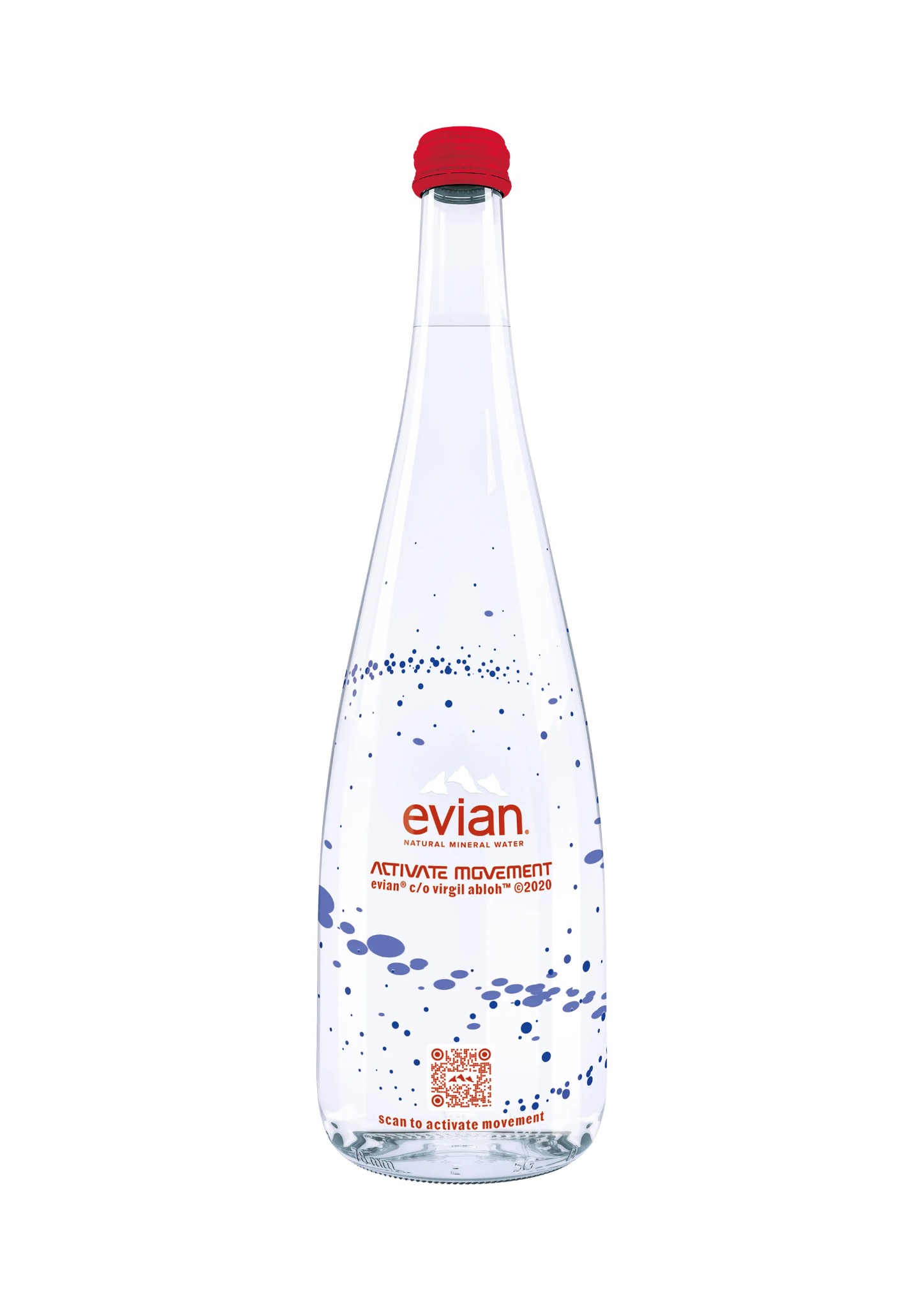The late Virgil Abloh was the artistic director of Louis Vuitton men’s wear and founder of off-white. In 2019, Abloh designed a limited edition 750ml glass water bottle in collaboration with water company “Evian” as part of the “one drop can make a rainbow” concept. The swirling design of blue dots is a representation of water droplets and their ripple effect, ultimately showing how singular sustainable actions add up to a greater impact on the Earth.
